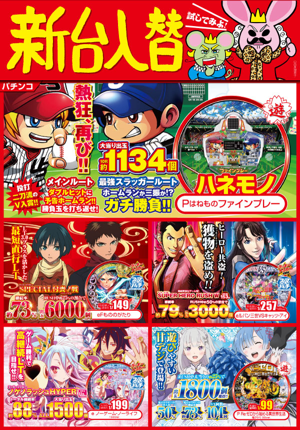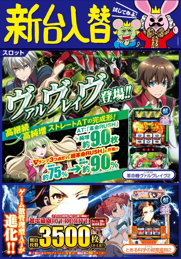 2025.10.25 新台入替 【浜田店】新台入替!(11/5・水) 浜田店 11月5日(水)朝9時オープン 浜田店新台入替 スマスロヴァルヴレイヴ スマスロとある超電磁砲 パチンコも多数! 詳しくはコチラ↓ 一覧に戻る