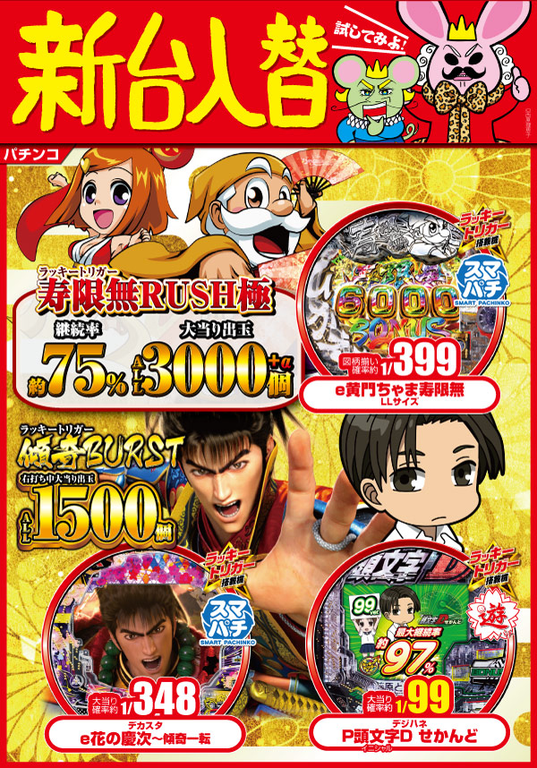 2025.11.08 新台入替 【浜田店】新台入替!(11/19・水) 浜田店 11月19日(水)朝9時オープン 浜田店新台入替 スマスロヴァルヴレイヴ2 早くも増台! スマパチ新台も登場! お楽しみに♪ 詳しくはコチラ↓ 一覧に戻る