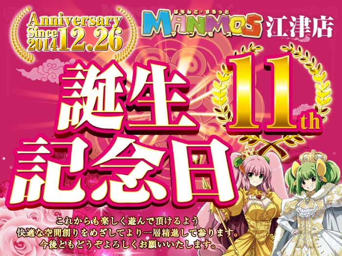 2025.12.26 お知らせ 【江津店】マンモス江津店 誕生記念日!! 江津店 12月26日(金) おかげさまで マンモス江津店 11周年!! これからも楽しく遊んで頂けるよう 快適な空間創りをめざしてより一層精進して参ります。 今後ともどうぞよろしくお願いいたします。 詳しくはコチラ↓ 一覧に戻る